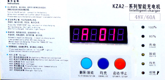 使用方法:當電池充電結束后,按一下均充健,小電流恒流均充二小時自動停止充電,可充進電量10 %。