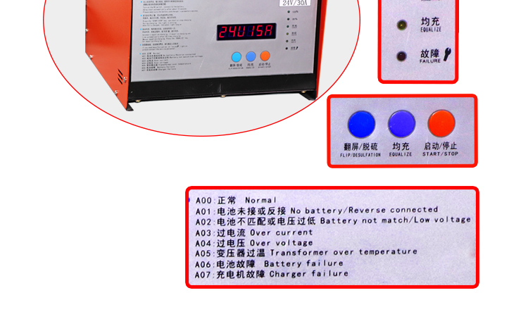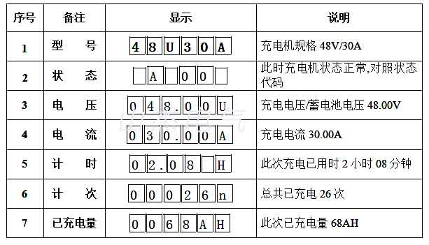 電動洗地機(jī)充電機(jī)、電動掃地機(jī)充電器、掃地車充電機(jī)面板LED數(shù)碼管顯示: