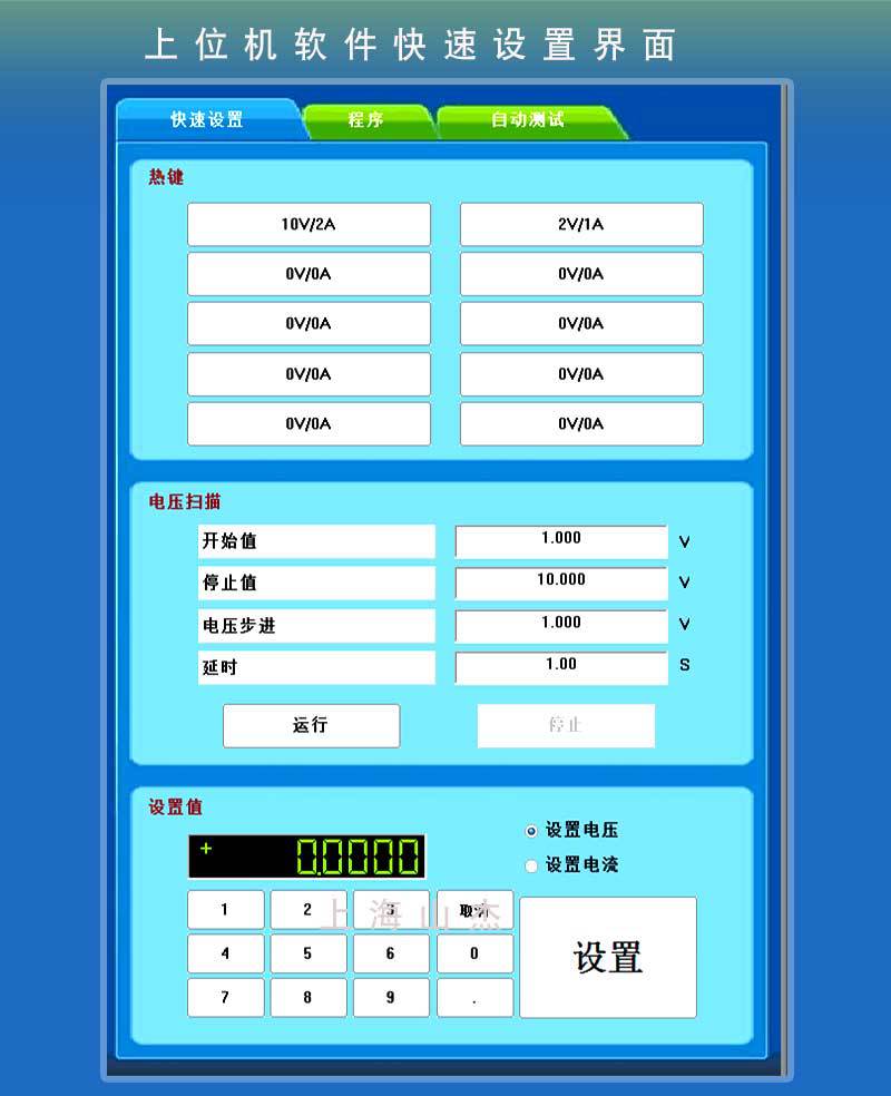 同時(shí)設(shè)置輸出電壓和輸出電流,電源自動(dòng)調(diào)節(jié),可在隨負(fù)載變化而發(fā)生的恒壓模式到恒流模式的互相轉(zhuǎn)換時(shí)保持不間斷操作。